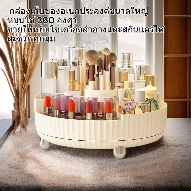 กล่องเก็บของขนาดใหญ่สำหรับวางบนโต๊ะ กล่องเก็บเครื่องสำอางแบบหมุนได้ ชั้นวางผลิตภัณฑ์ดูแลผิว กล่องเก็บของแบบตั้งโต๊ะ กล่องเก็บของขนาดใหญ่