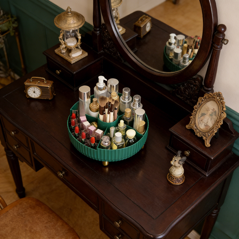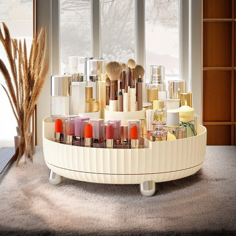 ● กล่องเก็บของอเนกประสงค์ขนาดใหญ่ หมุนได้ 360 องศา ช่วยให้หยิบใช้เครื่องสำอางและสกินแคร์ได้สะดวกทุกมุม
