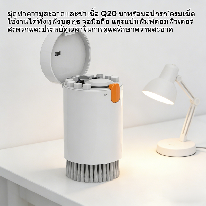 ● ชุดทำความสะอาดและฆ่าเชื้อ Q20 มาพร้อมอุปกรณ์ครบเซ็ต ใช้งานได้ทั้งหูฟังบลูทูธ จอมือถือ และแป้นพิมพ์คอมพิวเตอร์ สะดวกและประหยัดเวลาในการดูแลรักษาความสะอาด