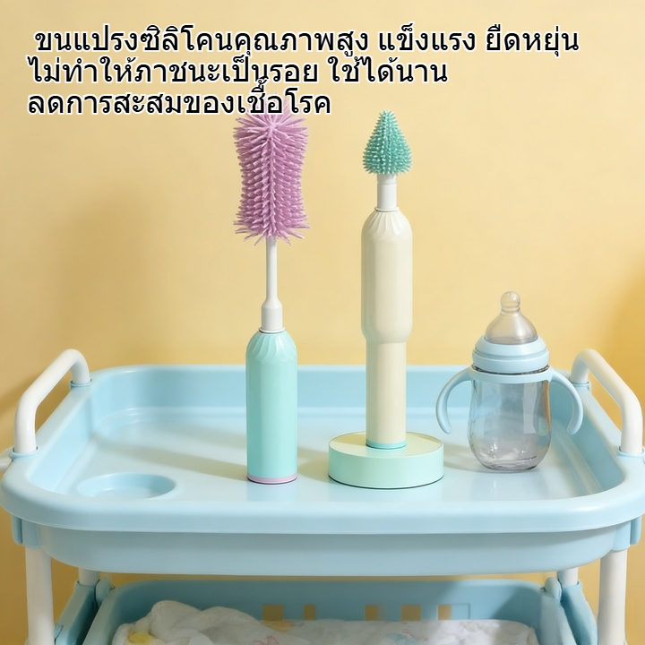 ● แปรงทำความสะอาดขวดน้ำและแก้วที่สามารถหมุนได้ 360 องศา ช่วยให้ทุกซอกทุกมุมสะอาดหมดจด ไม่ต้องออกแรงขัดมาก